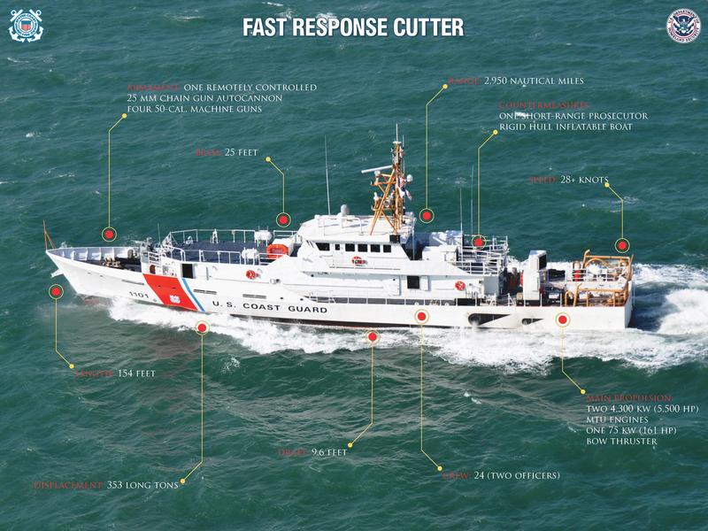 These vessels are 154×26.6×9.5 ft. 28 knots, with a crew of 22 (normally actually 24). They are armed with Mk38 mod2 or mod3 stabilized 25mm gun and four crew served .50 cal.