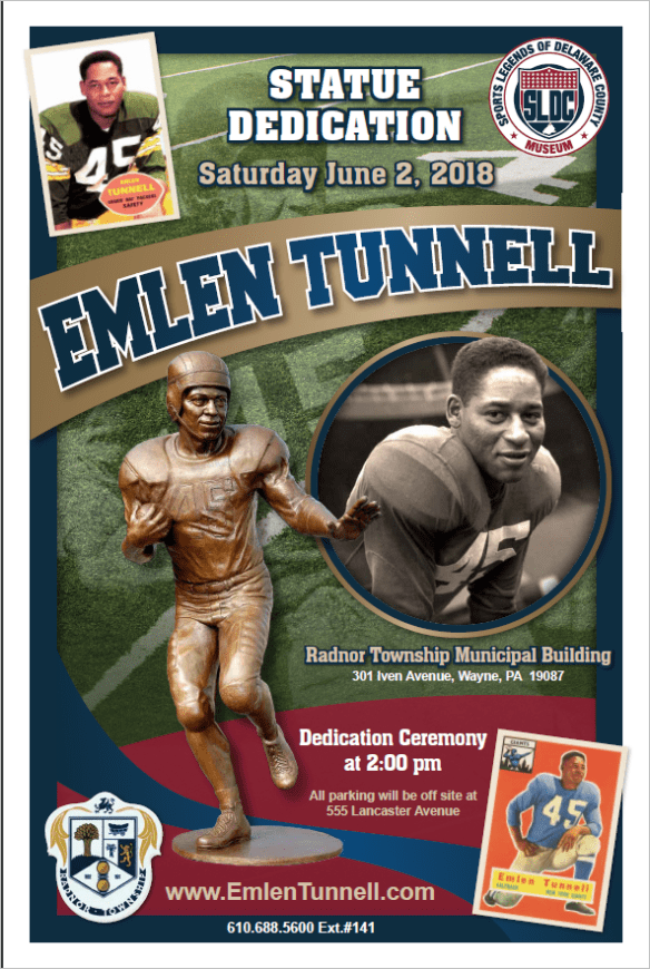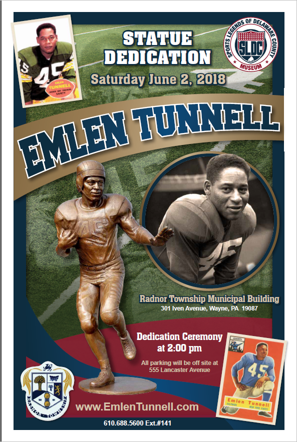 The memory of Tunnell, the Radnor High All-Delco football player who saved a pair of lives while serving with the Coast Guard during World War II, will be honored when the statue is unveiled June 2. He was also the first African-American inducted into the Pro Football Hall of Fame following his NFL playing career with the New York Giants and Green Bay Packers and his work as an assistant coach with the Giants.