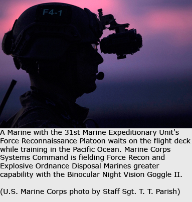 The Navy League’s online “Seapower Magazine” has a short post about new equipment being used by Marine Recon and EOD reminded me once again that perhaps the Coast Guard could use more night vision and thermal imaging devices.