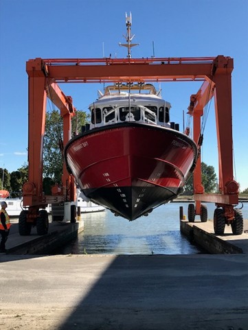 Canada is building twelve large, relatively fast, self-righting Motor Lifeboats. These are the “Bay” class and the first are now making an appearance.