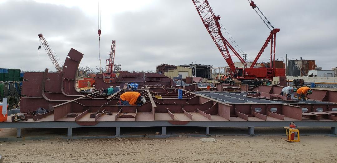 Some photos of progress on the future USCGC Argus. They are building sections inverted. The 54 foot beam (same as the National Security Cutter), seen best in the last photo, is pretty impressive compared to the WMECs they will be replacing (38 feet for the 270s and 34 for the 210s)..