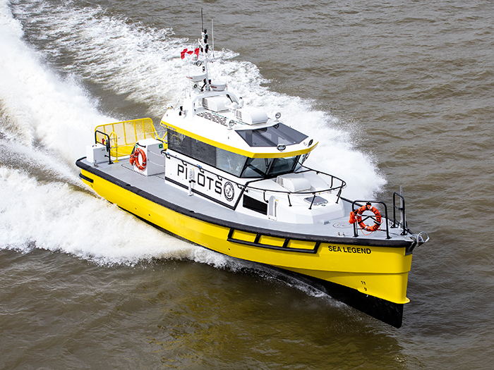 Another interesting, relatively fast heavy weather boat with an added feature, a man-overboard scoop, built for a Canadian pilot organization.