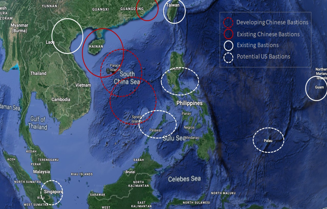 What has changed is the range of influence these bastions now have. Bastions in the South China Sea can now reach Guam with both ballistic missiles and air launched cruise missile.