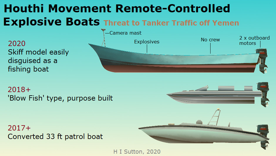 Naval News reports on the continued threat of remotely controlled explosive motor boats to vessel traffic around Yemen. We have talked about this before, here, here, and here. Historically explosive boats have had some success even against heavily armed opponents.