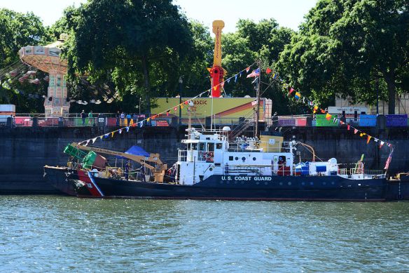 The Coast Guard Cutter Bluebell sits moored on the Willamette River waterfront in Portland, Ore., June 4, 2015. The Bluebell, which celebrated her 70th anniversary this year, is one of many ships participating in the 100th year of the Portland Rose Festival. (U.S. Coast Guard photo by Chief Petty Officer David Mosley.)