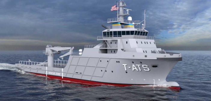 Designated as T-ATS(X) by the Naval Sea Systems Command (NAVSEA), the new class of vessels will be based on existing commercial towing offshore vessel designs . Gulf Island Shipyards rendering.