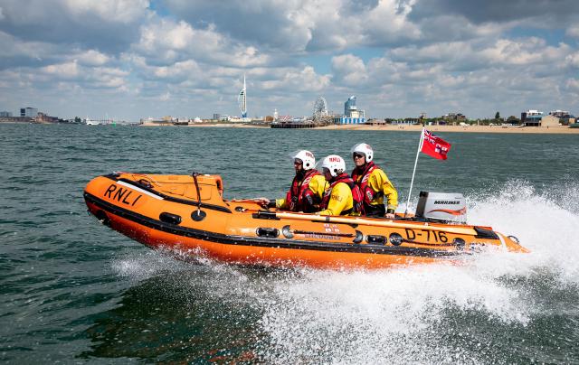 The Royal National Lifeboat Institution’s “class D lifeboats” are an example of the kind of inflatable boats the U.S. Coast Guard could operate from its larger response boats to reach remote shallow waters, shoals, and beaches. (RNLI)