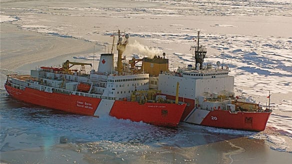 CCGS Louis S. St-Laurent alongside USCGC Healy