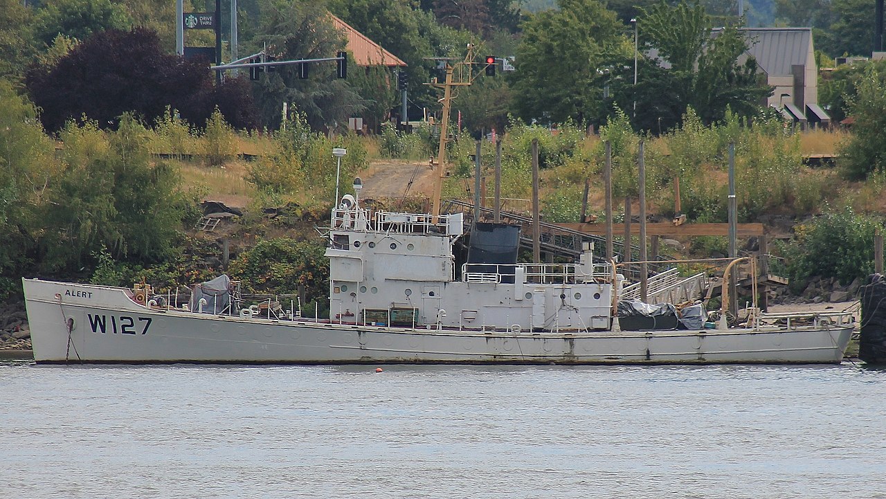 The Active-class cutter USCGC Alert (WMEC-127) moored on the Columbia River, by Hayden Island in Portland, Oregon. Seen on 14 August 2019. Photo from Wikipedia by godsfriendchuck.