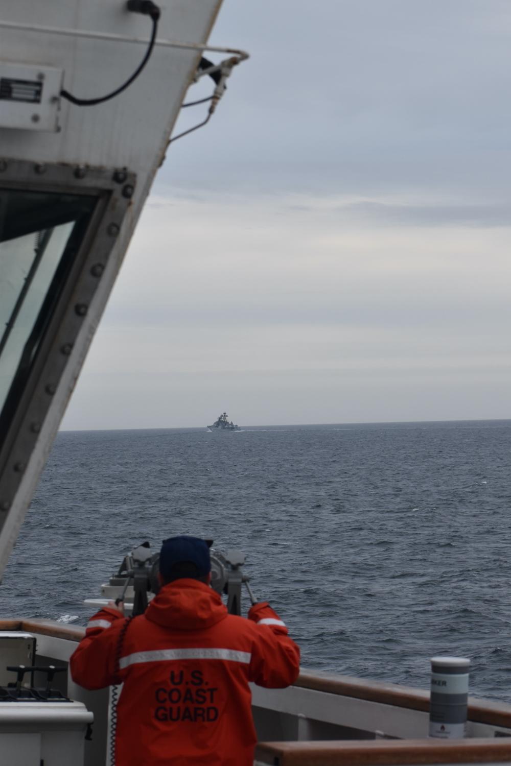 “While the formation has operated in accordance with international rules and norms,” said Rear Adm. Nathan Moore, Seventeenth Coast Guard District commander, “we will meet presence-with-presence to ensure there are no disruptions to U.S. interests in the maritime environment around Alaska.”