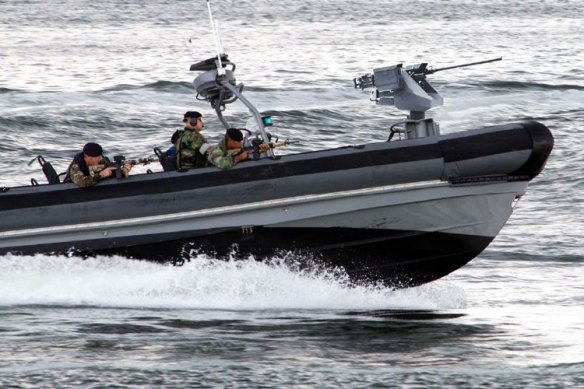 A pair of these mounted on opposite corners of the PATFORSWA Webber class, replacing two of the crew served .50 cal., might come in handy.