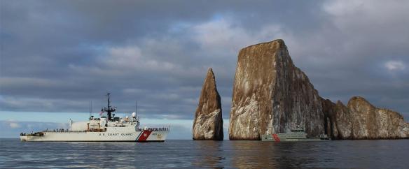 The USCGC Mohawk (WMEC-913), here with the Ecuador Navy offshore patrol vessel Isla San Cristobal, was the first cutter to anchor and visit Ecuador’s Galapagos Islands.
