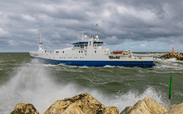Another first is the stern ramp system. On Nordsøen, the stern ramp is equipped with a slide-out system. All we had to do is make sure that the Hull Vane® was out of the path of this system. We see a benefit of such systems as it allows patrol vessels and naval ships with a stern ramp to be designed with an optimal hull shape, without a lot of transom immersion. Offshore Patrol Vessels sail a lot of time at moderate speeds (5-15 knots), and then it’s really beneficial to have not too much transom immersed”.