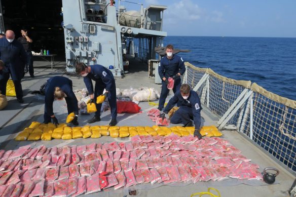 Cmdr Chris Sharp, HMS Lancaster Commanding Officer remarked, “This success again demonstrates how international partners can work together in stopping illegal maritime activity which funds terrorist activity. This was a great success shared by all those involved.”