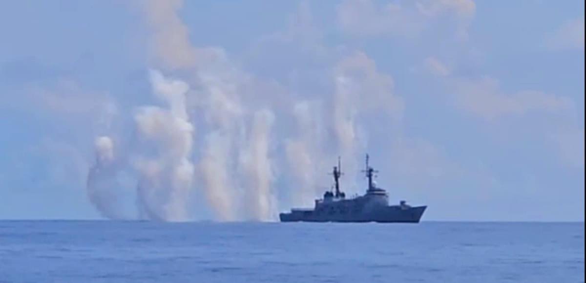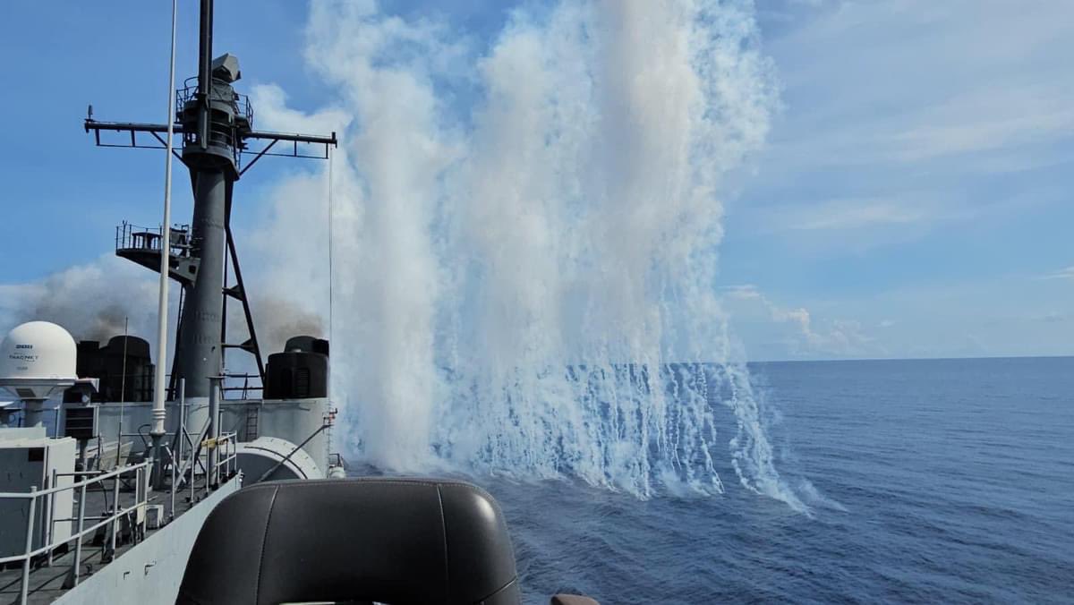BRP Andres Bonifacio (PS-17) deployed its newly installed Mark 36 Super Rapid Bloom Offboard Countermeasures Chaff and Decoy Launching System during a gunnery exercise in the SCS on June 19, 2024. Photo from Aaron-Matthew Lariosa.
