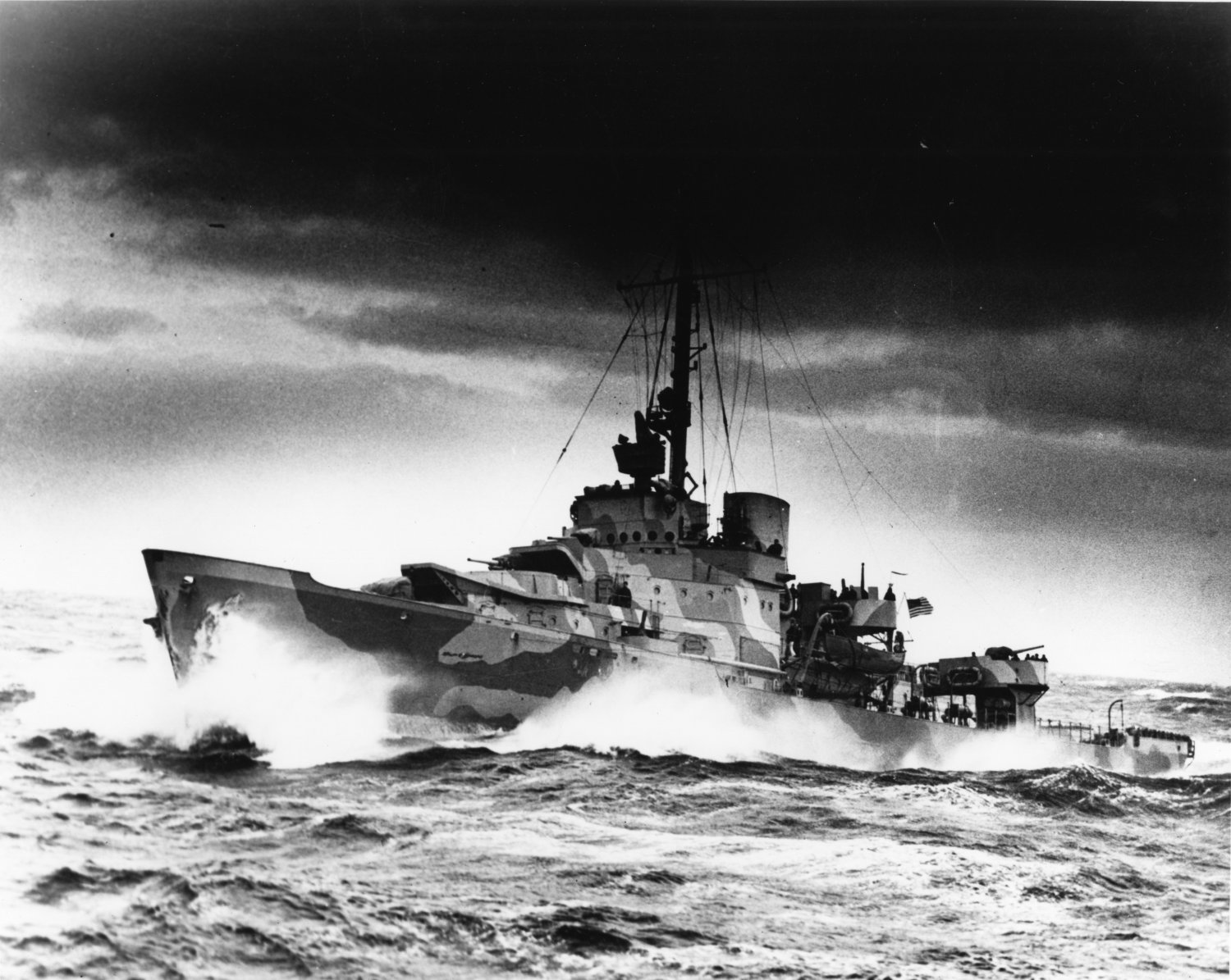 USCGC Ingham (WPG-35) underway in heavy seas, circa 1941-1944, location unknown.
