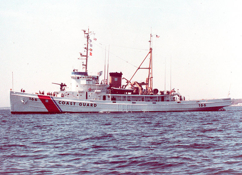 USCGC Tamaroa (WMEC-166), underway 1 May 1990, one year before she would sail into a vicious Halloween storm that later was dubbed “The Perfect Storm.” Her crew saved seven lives then. US Coast Guard photo.