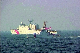 Two USCG cutters (Monomoy (foreground) and Spencer) searching for survivors from EgyptAir Flight 990.