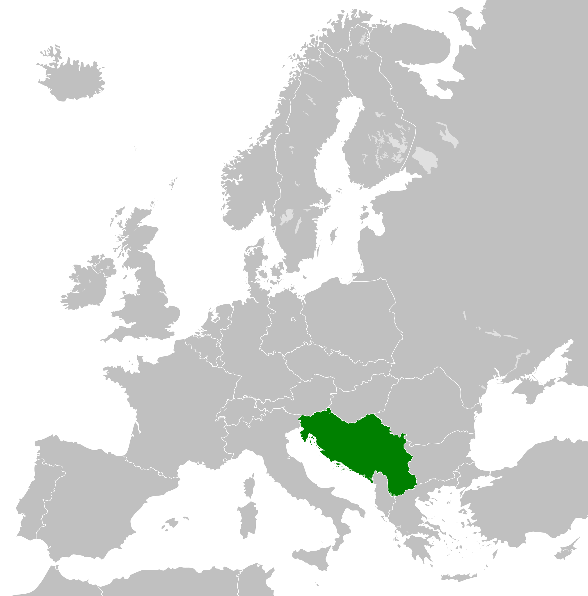 Map of Socialist Federal Republic of Yugoslavia as it was from 1945-1992. Surrounding countries accurate from 1956-1990.
