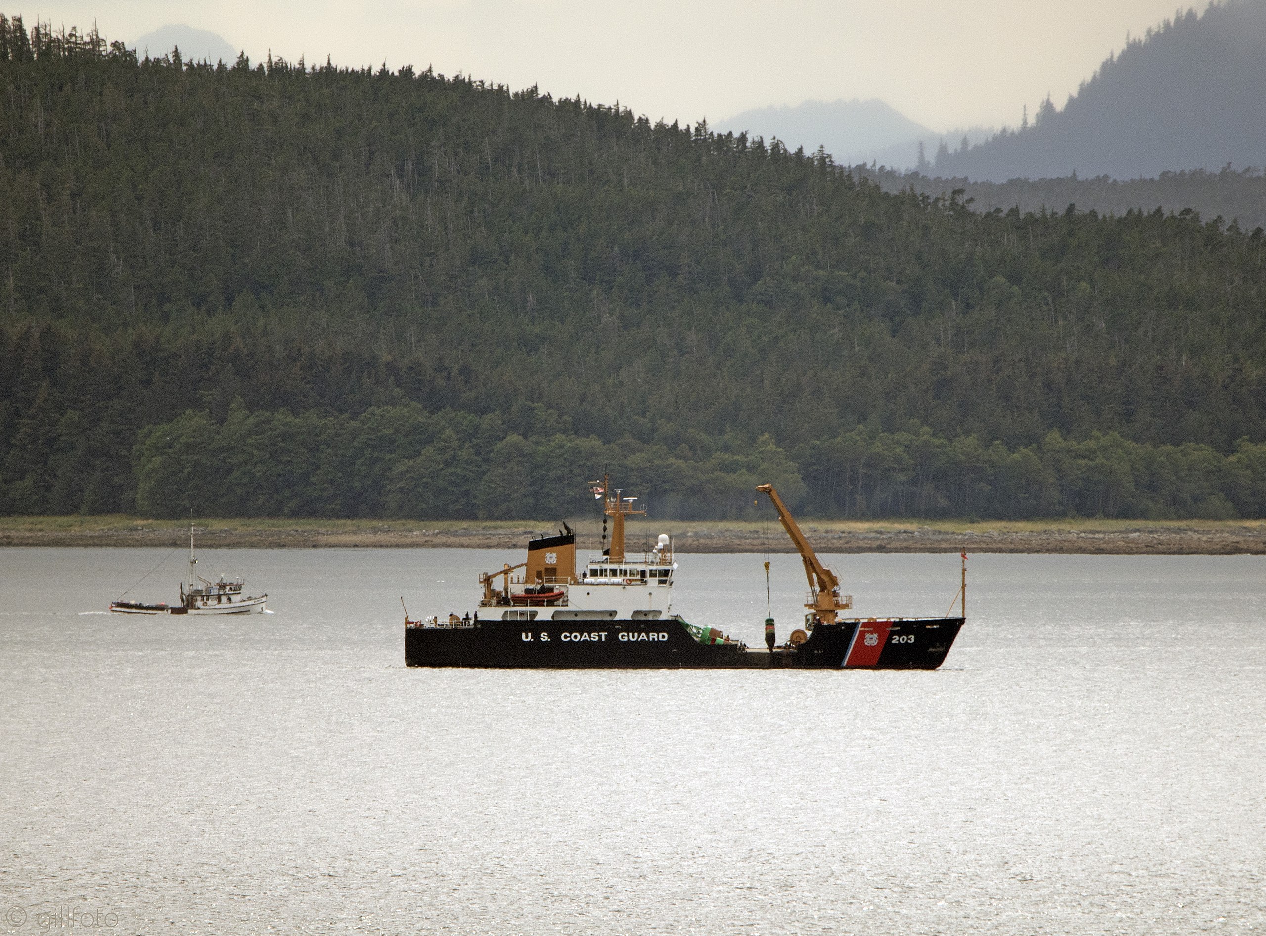 USCGC Kukui (WLB-203) raising the Strauss Rock Buoy, South Shelter Island, Southeast Alaska 24 August 2019. Photo by Gillfoto.