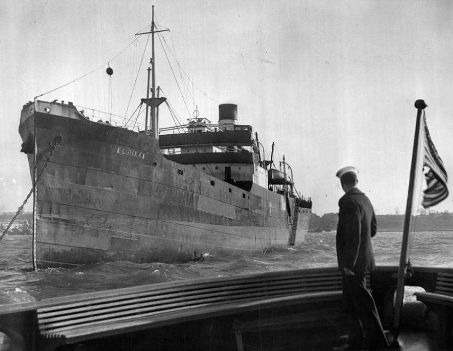 1941 Coast Guardsmen seized all nine Finnish vessels that were in U.S. ports and placed them in “protective custody” to “prevent the commission of any acts of sabotage” on orders from the Navy Department. Twenty-four hours later the Coast Guard removed the crews from each of the vessels. (The Finns were allied with Germany against the Soviets.) This action was ordered soon after the break in diplomatic relations between Great Britain and Finland. The following Finish vessels were seized: SS Olivia, at Boston, Massachusetts; SS Kurikka, SS Jourtanes, and SS Saimaa at New York, New York; SS Advance, at Philadelphia, Pennsylvania; SS Aagot and SS Marisa Thorden at Baltimore; SS Aurora, at Newport News, Virginia; and SS Delaware, at Galveston, Texas.