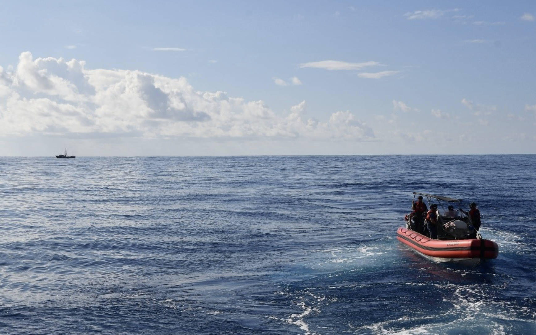 A small boat crew assigned to U.S. Coast Guard Cutter Joseph Gerczak (WPC 1126) gets underway to conduct a boarding on a U.S. flagged fishing vessel near American Samoa Feb. 3, 2025. Due to American Samoa’s status as a U.S. territory, the Coast Guard has the authority to conduct boardings in the U.S. Exclusive Economic Zone surrounding the territory, which extends up to 200 nautical miles offshore. (U.S. Coast Guard photo by Ensign Samuel Carrol)