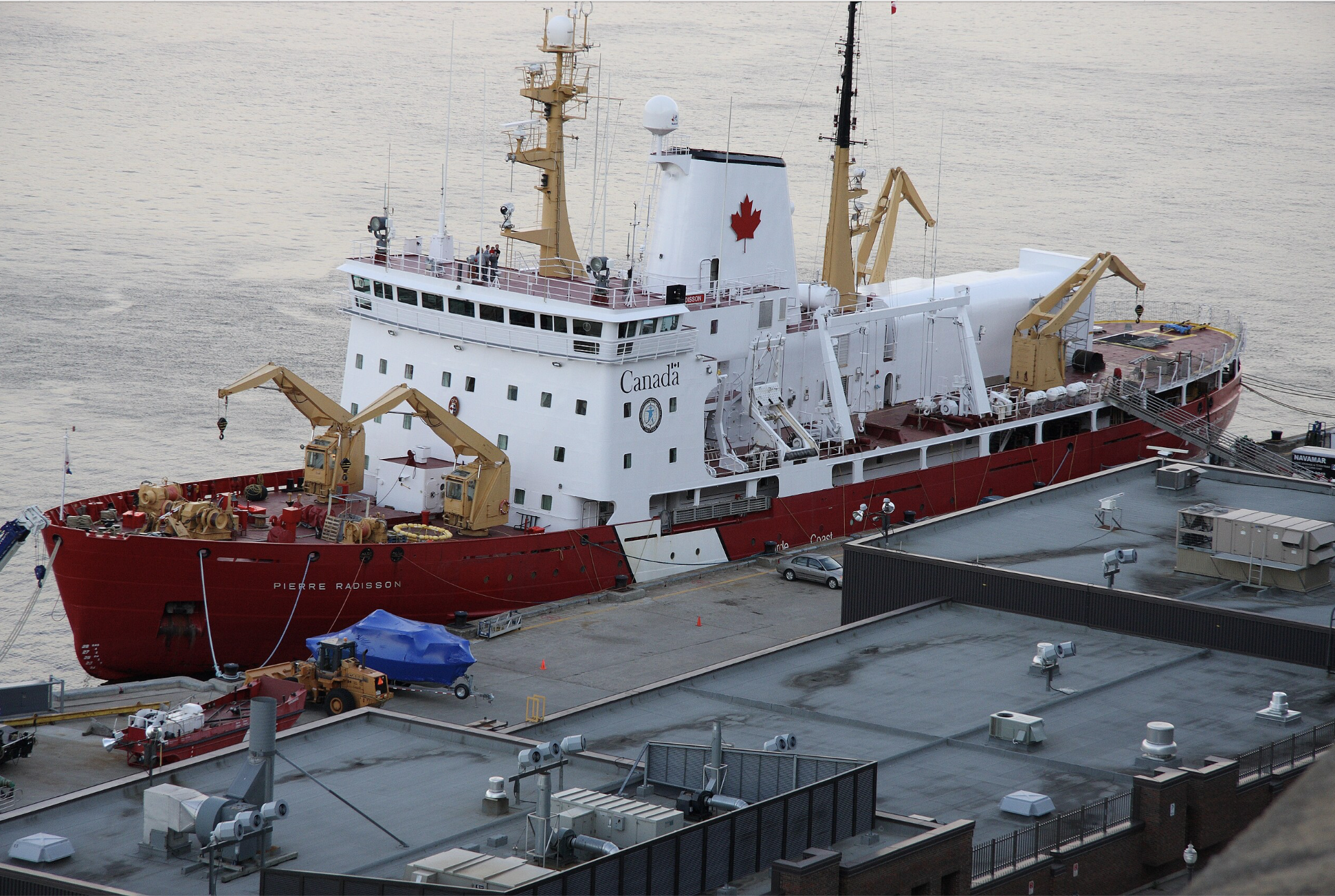2014 CGC Mackinaw, home-ported in Cheboygan, Michigan, conducted an escort on Lake Superior near Whitefish Point. Mackinaw’s crew worked together with the crew of Canadian Coast Guard Ship Pierre Radisson, home-ported in Quebec City, as part of an ongoing bi-national agreement between the U.S. and Canada, to break sheet ice that was nearly 40 inches thick.