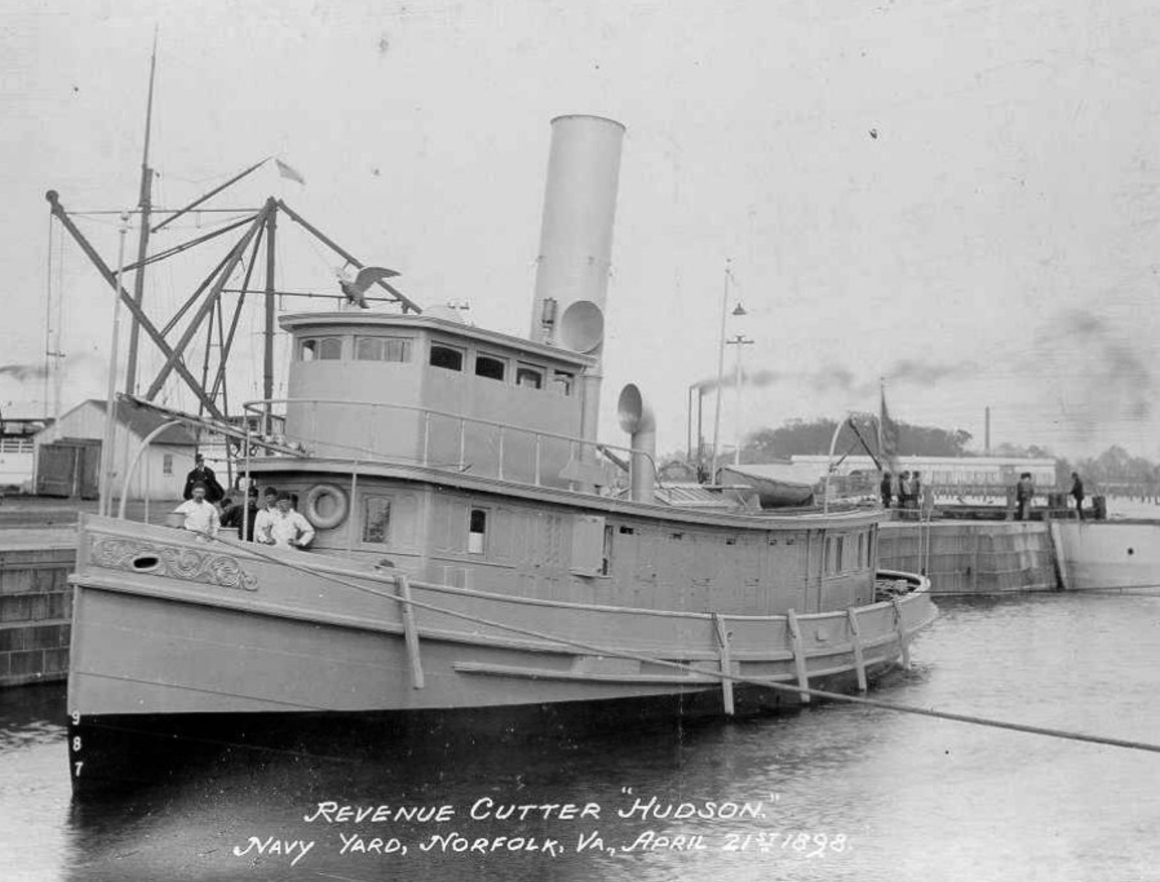 USRC HUDSON At the Norfolk Navy Yard, Portsmouth, Virginia, 21 April 1898 being outfitted for service in the Spanish-American War, which included adding additional armament, armor plating, and a new coat of “war paint” U.S. Coast Guard History website