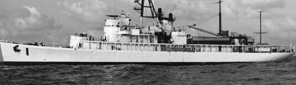 On the morning of 14 May 1951, two months after she returned to Norfolk from her second Middle East tour, Valcour headed out to sea for independent ship exercises. While passing the collier SS Thomas Tracy off Cape Henry, Virginia, she suffered a steering casualty and power failure. As she veered sharply across the path of the oncoming collier, Valcour sounded warning signals. Thomas Tracy attempted to make an emergency turn to starboard but her bow soon plowed into Valcour‘s starboard side, rupturing an aviation gasoline fuel tank. An intense fire soon broke out aboard Valcour and, fed by the high-test aviation gasoline, spread rapidly. To make matters worse, water began flooding into Valcour‘s ruptured hull. Although fire and rescue parties on board Valcour went to work immediately, the gasoline-fed inferno forced many of Valcour‘s crew to leap overboard into the swirling currents of Hampton Roads to escape the flames that soon enveloped Valcour‘s starboard side. The situation at that point looked so severe that Valcour‘s commanding officer, Captain Eugene Tatom, gave the order to abandon ship.