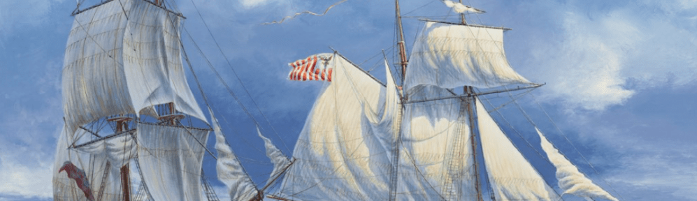 A painting by Peter Rindlisbacher of the Cutter James Madison capturing the British merchantman Shamrock. Credit: Coast Guard Collection