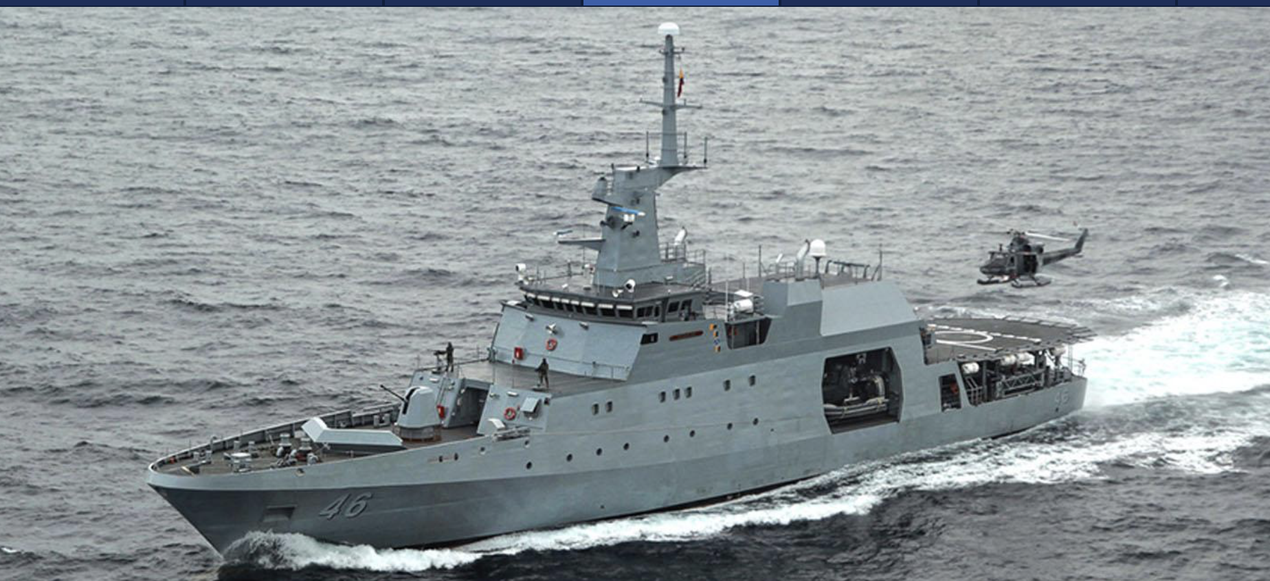 Colombian Navy patrol vessel ARC 20 de Julio carries out an ocean patrol.