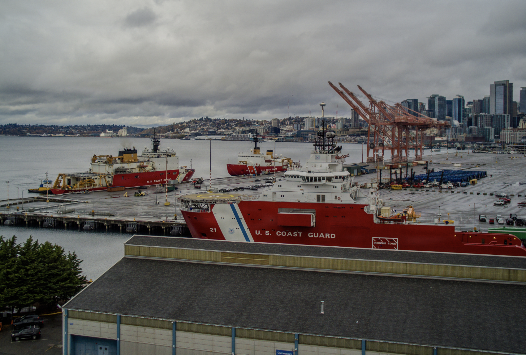 Polar Star, Storis, and Healy. U.S. Coast Guard Cutter Healy (WAGB-20) arrives at Pier 46 on Coast Guard Base Seattle, Oct. 26, 2025. The crew of the Healy transited over 20,000 miles, supporting Operation Arctic West Summer and Operation Frontier Sentinel, protecting U.S. sovereign rights and territory, and promoting national security in the Arctic. (U.S. Coast Guard photo by Lieutenant Christopher Butters)