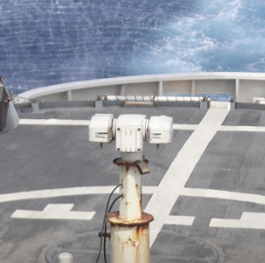 The device is an E/O director. It includes a TV camera and probably a FLIR. Most likely used for viewing an approaching helicopter but also useful for surveillance.