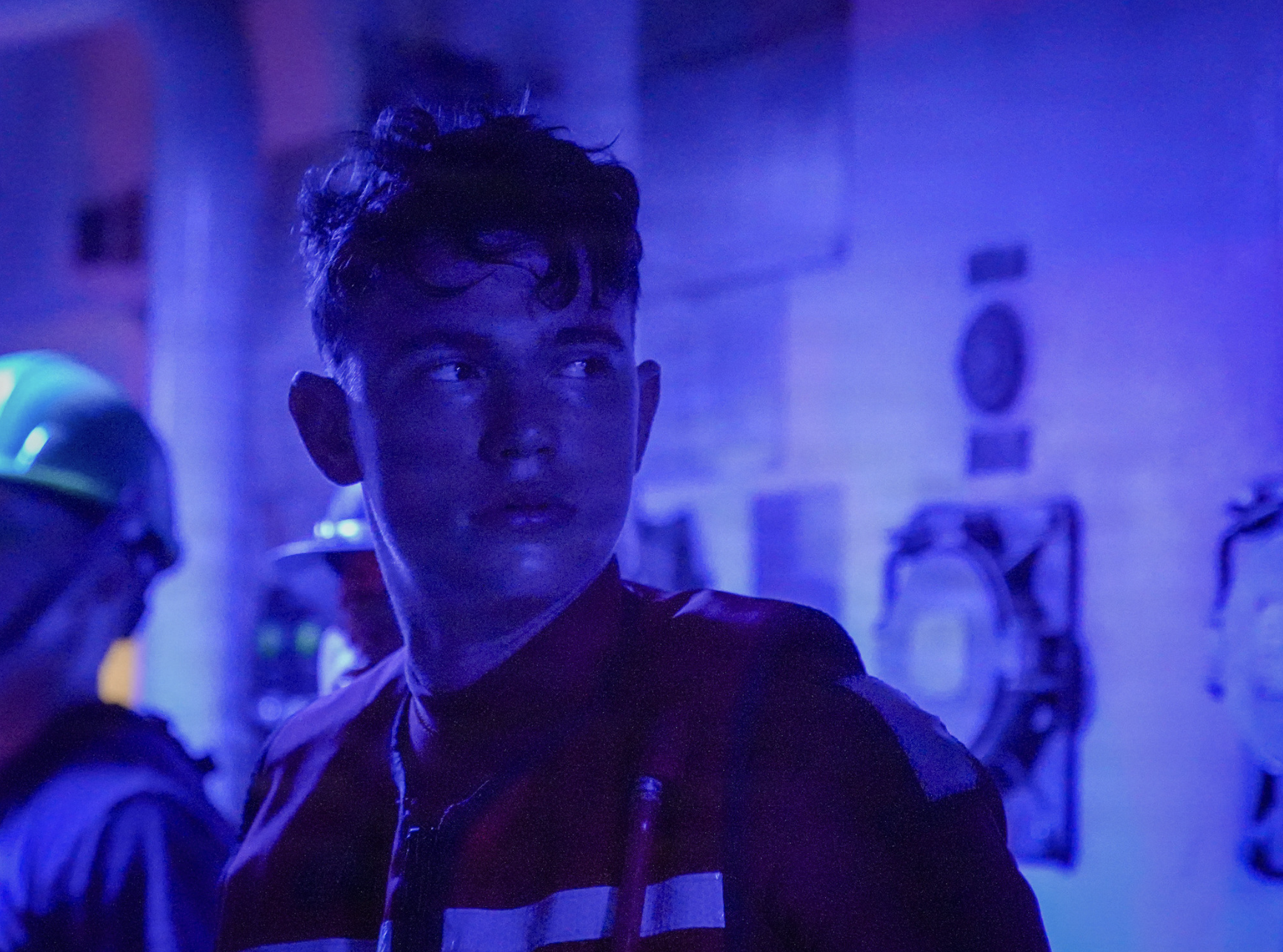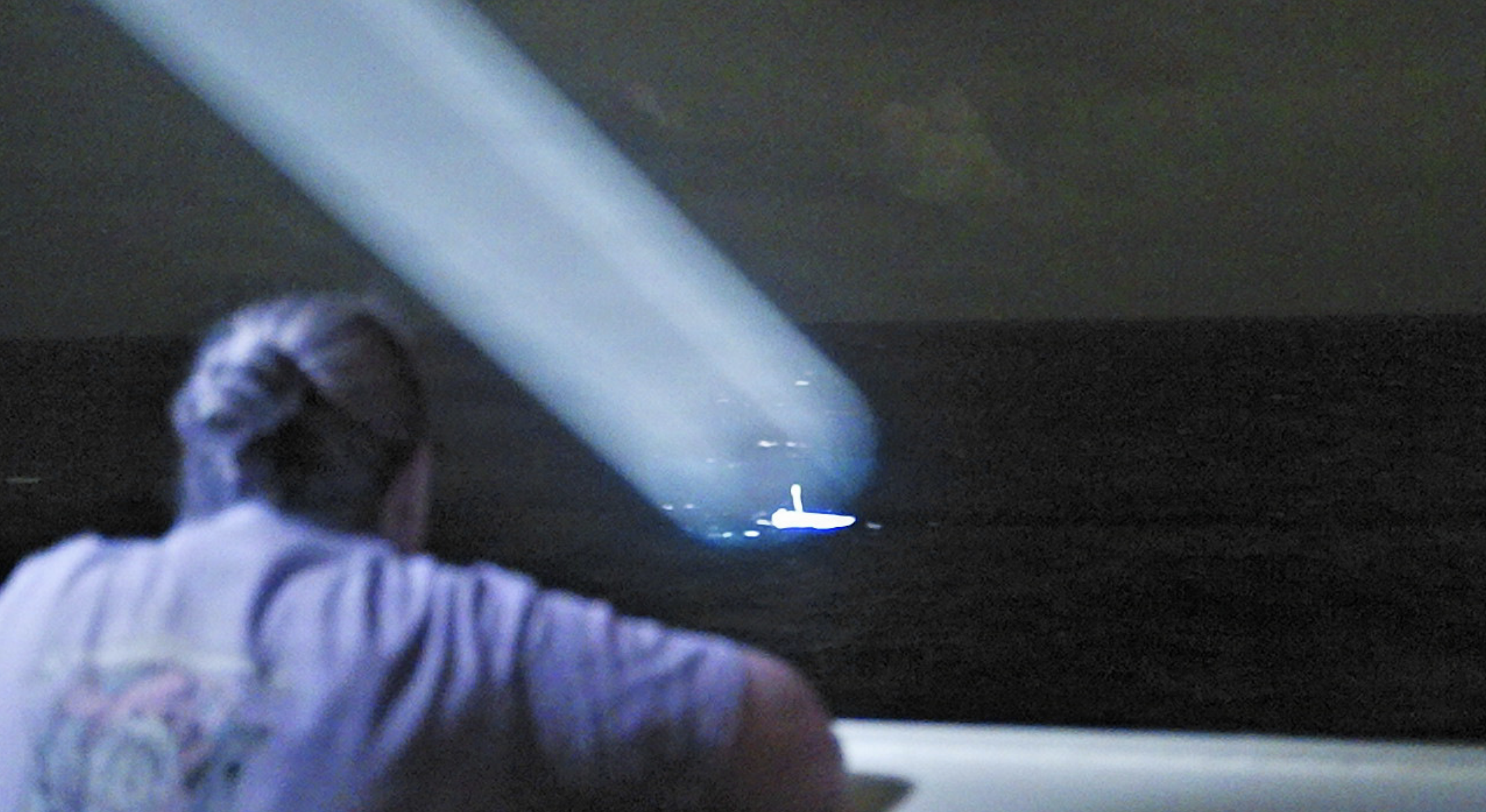 U.S. Coast Guard Lt. Cmdr. Stephanie Jocis, operations officer aboard Legend-class cutter USCGC Midgett (WMSL 757), observes a 23-foot single-outboard skiff vessel, carrying three members of a missing family in the waters of Chuuk State, Federated States of Micronesia, in Midgett’s search light during the early hours of April 6, 2026. The crew of Midgett rescued the family after the vessel went missing on March 30 in the waters of Chuuk State. U.S. Coast Guard missions in the Indo-Pacific focus on issues directly supporting and advancing our regional partners’ efforts to protect fish stocks and ensure the safety of life at sea, ensuring a secure and prosperous Indo-Pacific. (U.S. Coast Guard photo by Seaman Lauren Taber)