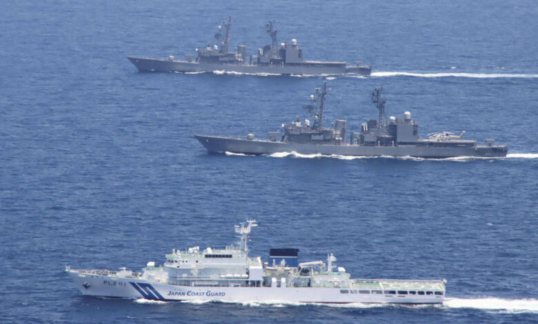 Royal Navy vessel HMS Spey (P234) (foreground) conducts coordinated ship maneuvers with U.S. Coast Guard Cutter Munro (WMSL 755) Sept. 17, 2023, in the South China Sea. Munro is deployed to the Indo-Pacific to advance relationships with ally and partner nations to build a more stable, free, open and resilient region with unrestricted, lawful access to the maritime commons. (U.S. Navy photo by Chief Petty Officer Brett Cote)