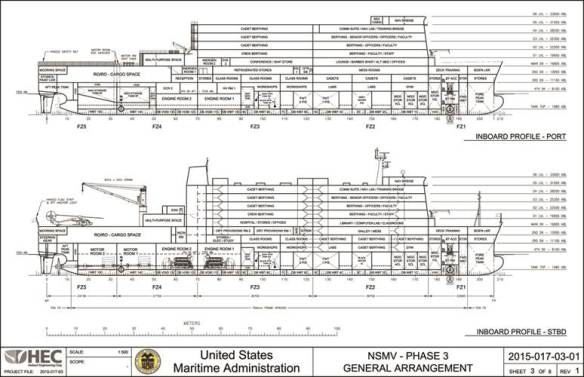 MarineLink reports MARAD is planning a new class of ships to serve as training ships for the five State Maritime Academies (SMA). Additionally these ships are expected to be available to respond to Natural Disasters. The new design is being referred to as the National Security Multi-Mission Vessel (NSMV).