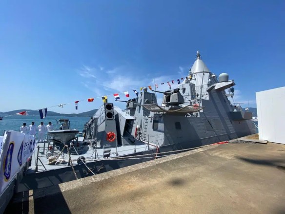 “…in addition to the NA-30S Mk2 FCS for the Leonardo Super Rapido 76/62 mm Multi-Feeding main calibre gun, the Leonardo-provided EO/IR suite also includes two SASS IRSTs and a single Medusa Mk4B FCS for the two 30 mm Marlin-WS secondary gun systems. The missile armament package also includes two four-cell VLSs for the MBDA VL MICA surface-to-air system in the bow area and two twin-launchers for the MBDA Exocet MM40 Block 3 anti-ship missiles in the stern area.”
