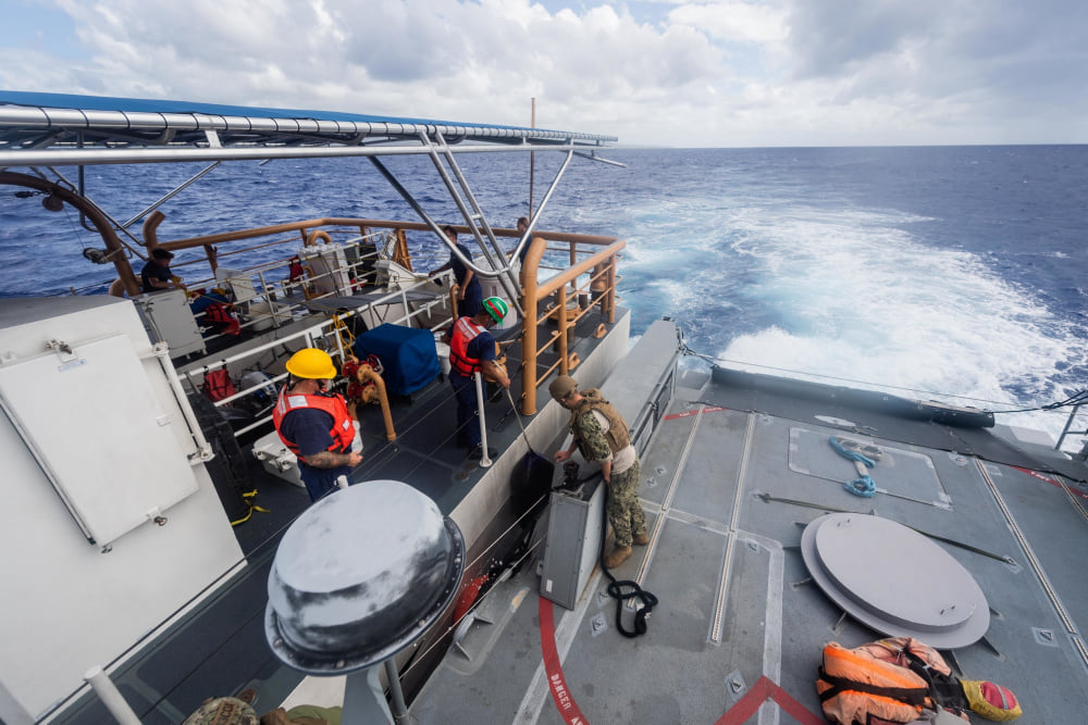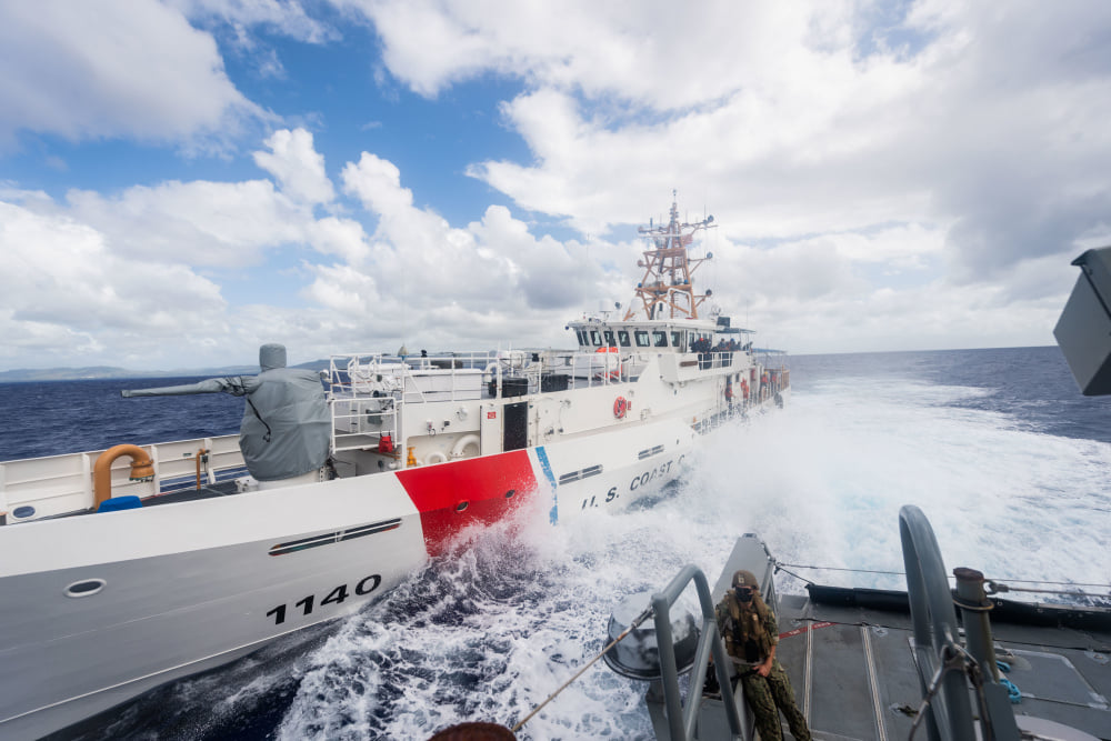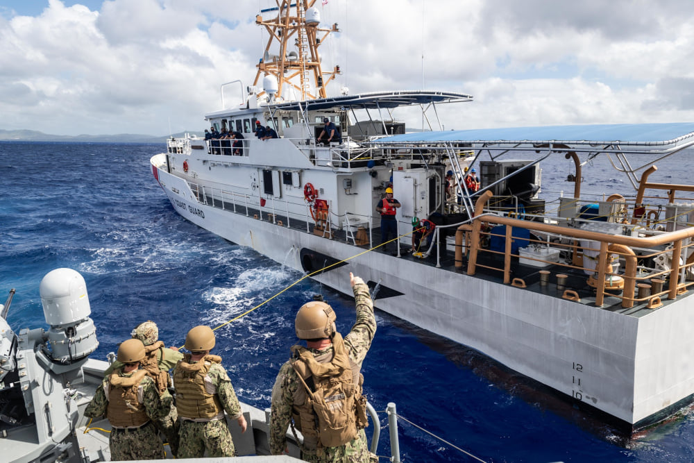 “U.S. Army and Navy assets conduct an interdiction operation in the Bering Sea in July 2024.” Note how flat the seas are. That’s not normal. They did do this in July. You can’t count on seas like this. IMAGE CREDIT: SENIOR AIRMAN JOHNNY DIAZ/U.S. AIR FORCE