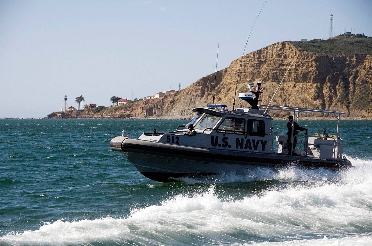 A U.S. Navy Mark VI patrol boat with Maritime Expeditionary Security Squadron TWO moves through the water prior to a live fire exercise in the Philippine Sea, Feb. 27, 2021. (U.S. Marine Corps photo by 1st Lt. Stephanie Murphy).