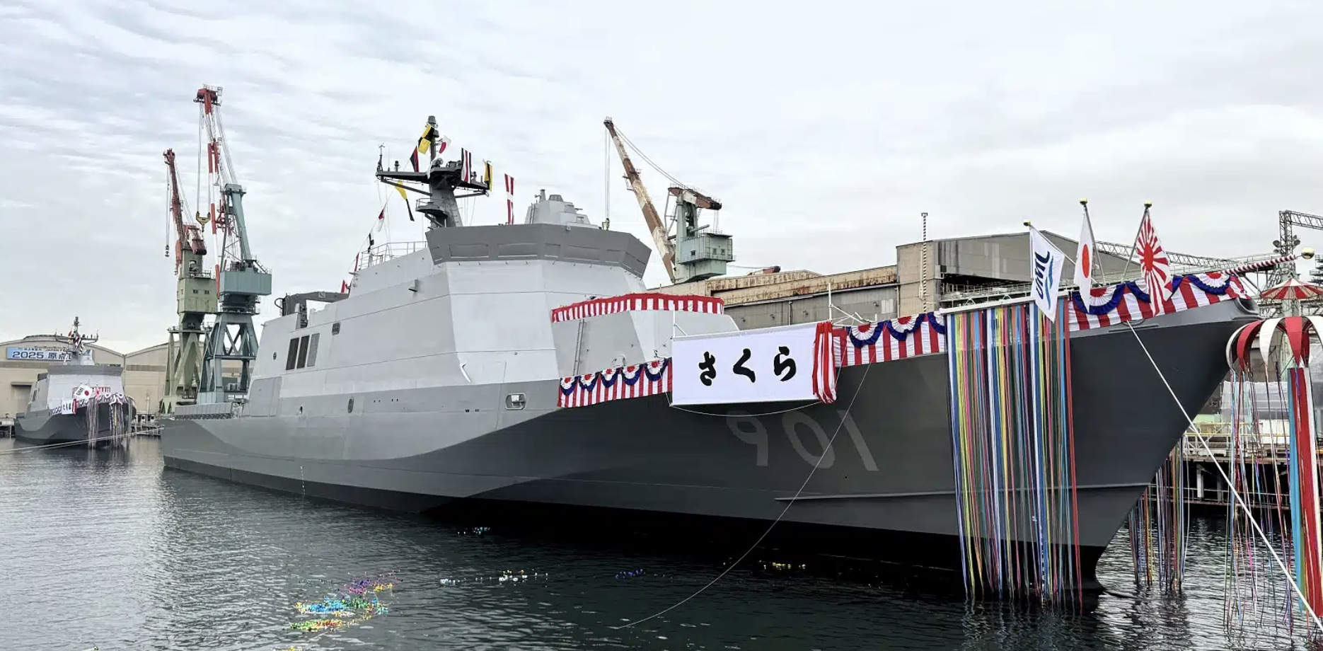 The first and second ships of the Japan Maritime Self-Defense Force’s new patrol vessel class, Sakura and Tachibana, were launched by Japan Marine United (JMU) on November 13, 2025 (photo by Kosuke Takahashi).