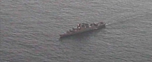STRAIT OF HORMUZ (Oct. 6, 2023) An undated still image released on Oct. 6 from video of an Iranian Navy frigate taken by an Aerovel Flexrotor unmanned aerial vehicle (AAV) in the Strait of Hormuz.(U.S. Navy photo)