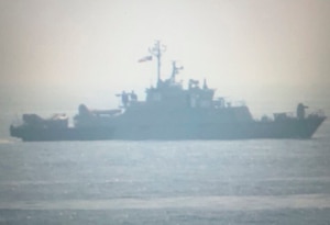 STRAIT OF HORMUZ (Oct. 6, 2023) A undated still image released on Oct. 6 from video taken by a MARTAC T-38 Devil Ray unmanned surface vessel of an Islamic Revolutionary Guard Corps Navy warship in the Strait of Hormuz.