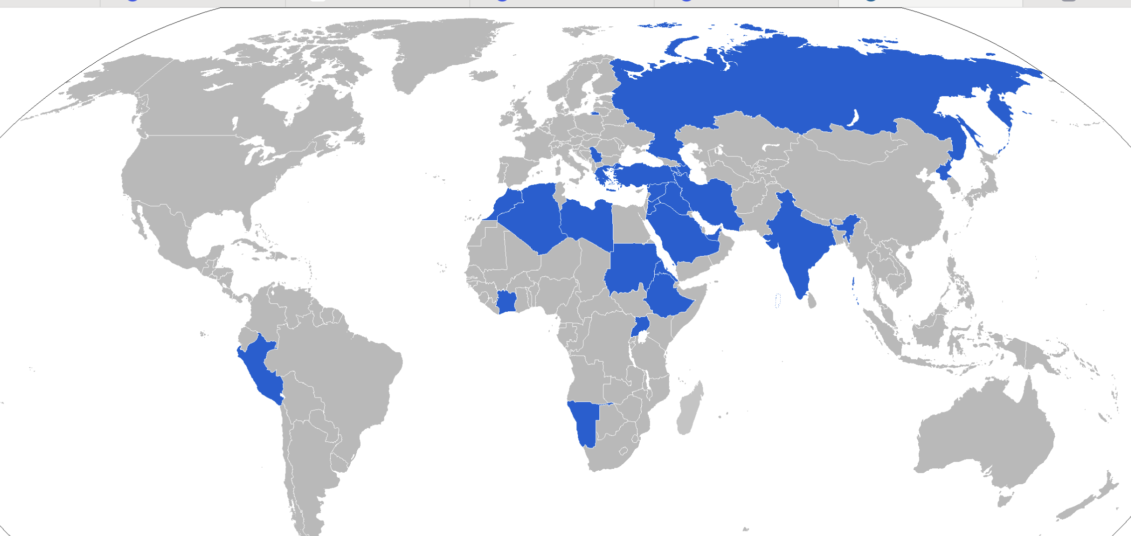 Map of D-30 operators in blue with former operators in red. From Wikipedia. Credit: Jurying
