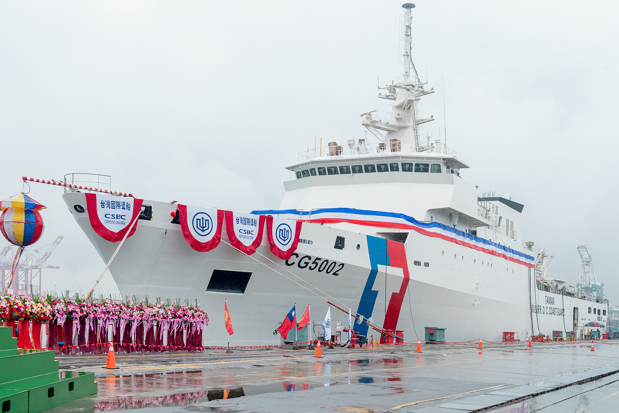 Patrol vessel of Coast Guard Administration CG 5002 Hsinchu at the launching ceremony. Official Photo by Makoto Lin / Office of the President, 28 April 2021