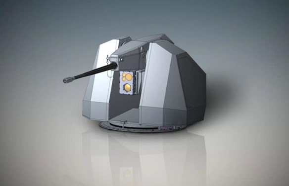 The new Mark 38 Mod 4 30mm naval gun system on display on MSI Defence stand at Sea Air Space 2022. It can, in theory and with funding, be retrofitted aboard existing USCG cutters if agreed upon between the U.S. Navy and the U.S. Coast Guard. Photo: NavalNews
